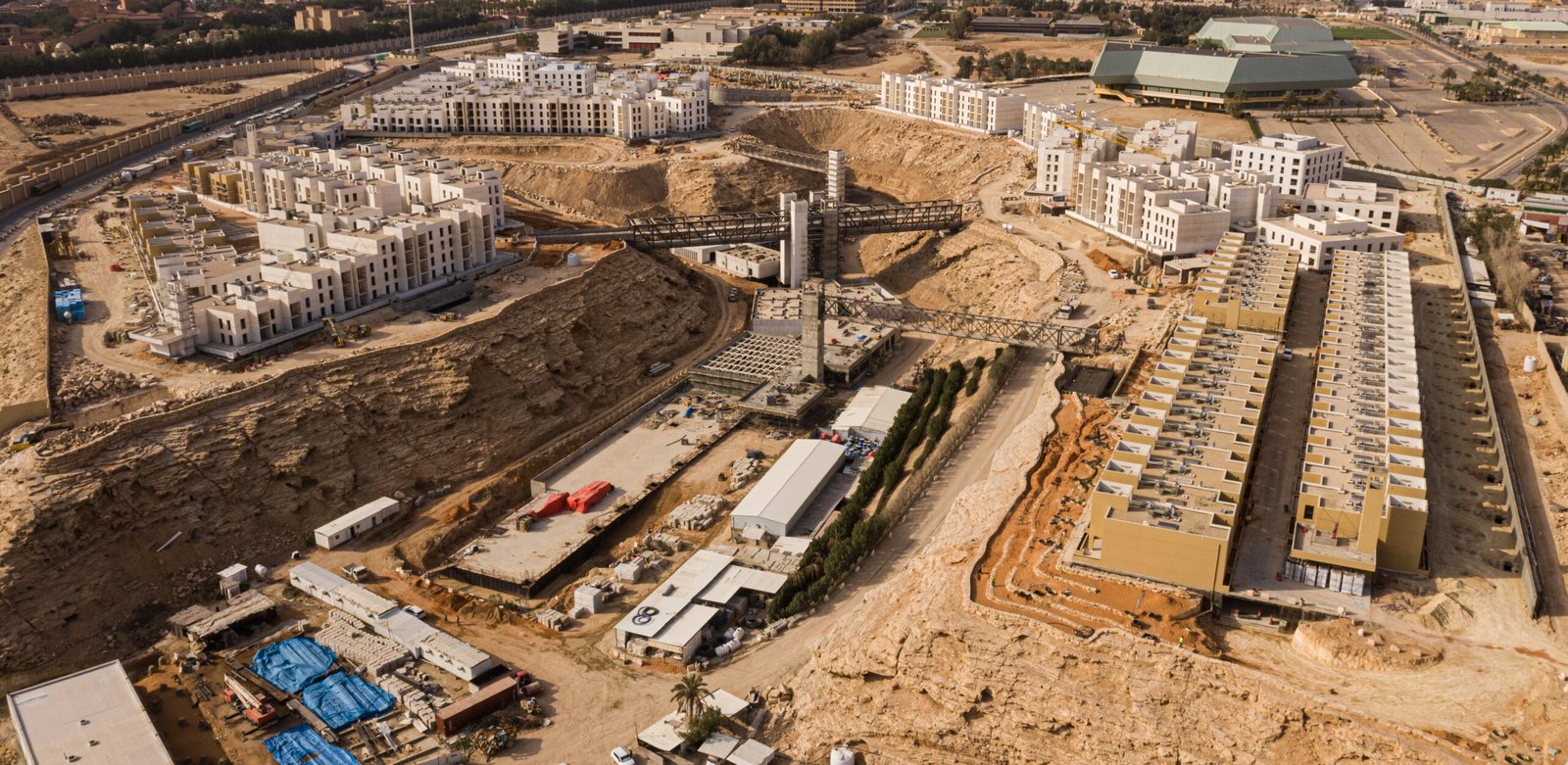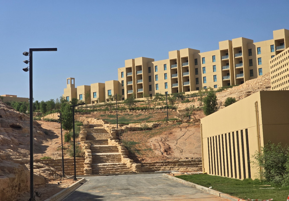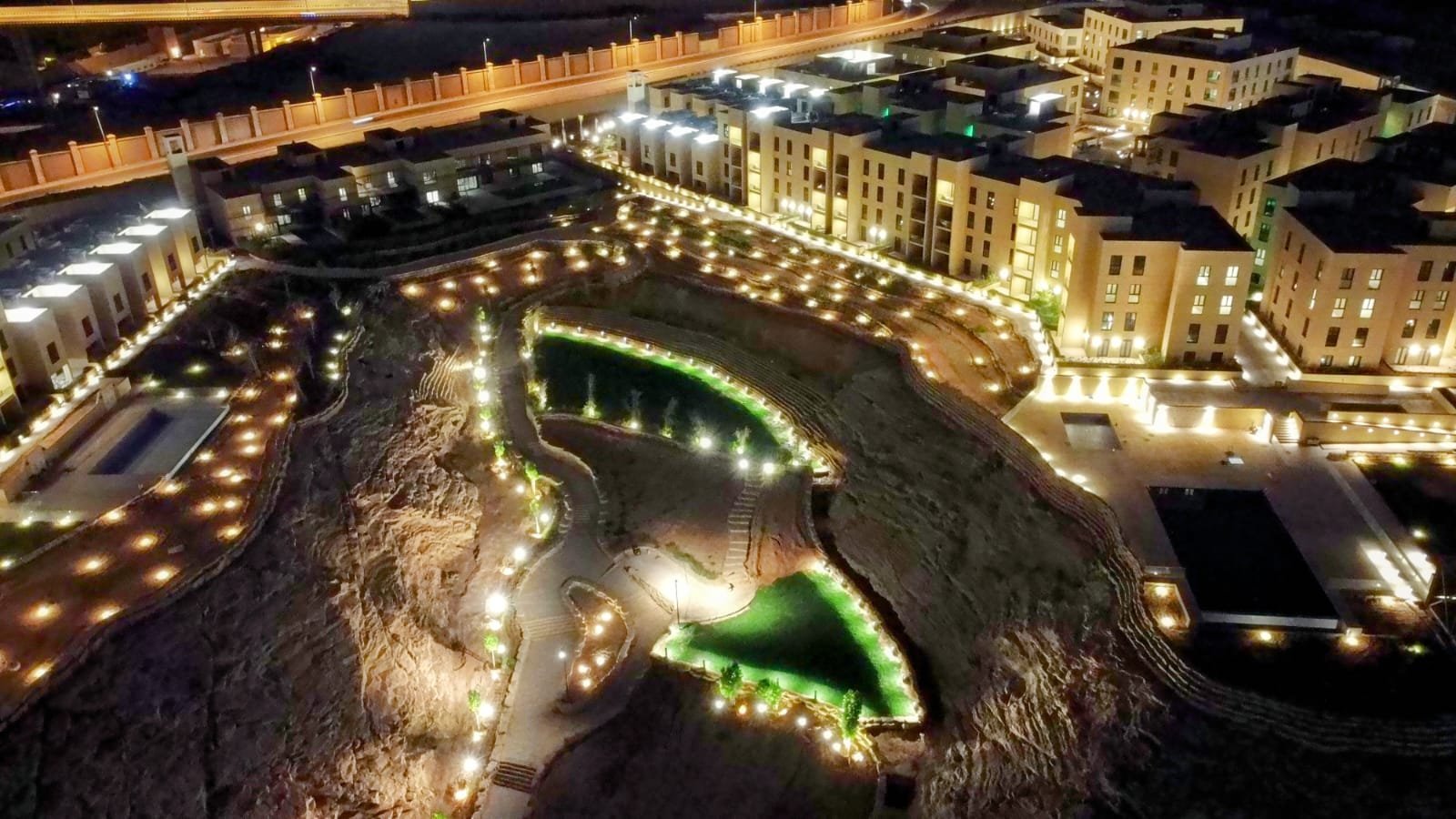 مشروع متكامل وجاهز للتسليم يشمل: المباني، المرافق، البنية التحتية والمساحات الخضراء