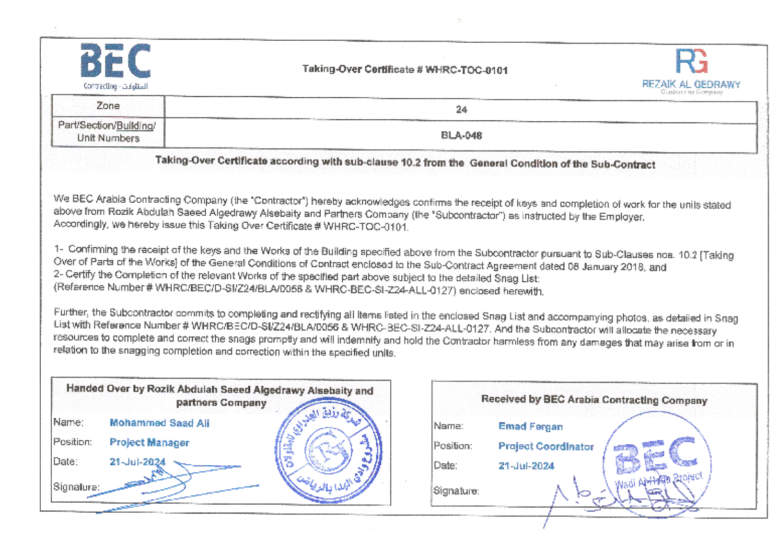 كان المشروع مصحوبًا بتحديات مالية وفنية كبيرة. ورغم هذه التعقيدات، تم تسليم المشروع بنجاح ويتميز بجودته وتميزه. أصبحت شركة القدية (صندوق الاستثمارات العامة) هي المستفيد النهائي من المنتجع لمدة عشر سنوات قادمة. هذا يبرهن على قدرة RGC ليس فقط على تنفيذ المشاريع الرفيعة المستوى والمعقدة فنيًا، بل أيضًا على التعامل المباشر وغير المباشر مع شركات صندوق الاستثمارات العامة.